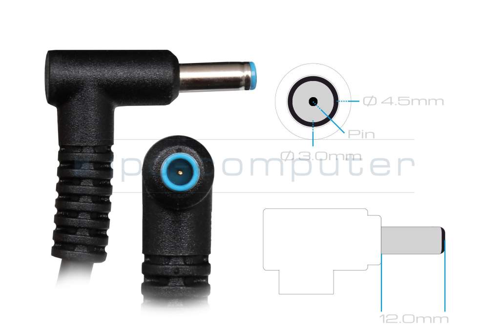 • Adapter: Ein wesentliches Merkmal ist der mitgelieferte Konvertierungs-Dongle (Adapter), der den 4,5-mm-Anschluss in einen größeren 7,4-mm-DC-Stecker (ebenfalls mit Pin) umwandelt, wodurch das Netzteil mit einer breiteren Palette von älteren und neueren HP Notebooks und anderen kompatiblen Geräten verwendet werden kann.