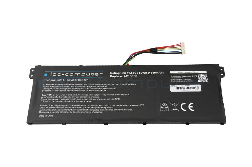 Typ AP18C8K mit 11,4V – je nach Ausstattung des Geräts werden unterschiedliche Akkus verbaut. - Eine abweichende Typ-Bezeichnung kann zu Kompatibilitätsproblemen führen wodurch dieser Akkus in Ihrem Gerät möglicherweise nicht erkannt oder geladen werden kann. - Achtung: Dieser Akku kann nicht für Acer SWIFT SF314-59 Modelle verwendet werden!