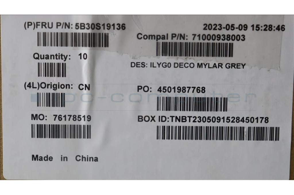 Lenovo 5B30S19136 BEZEL Deco cover Mylar C 82Y4 Grey