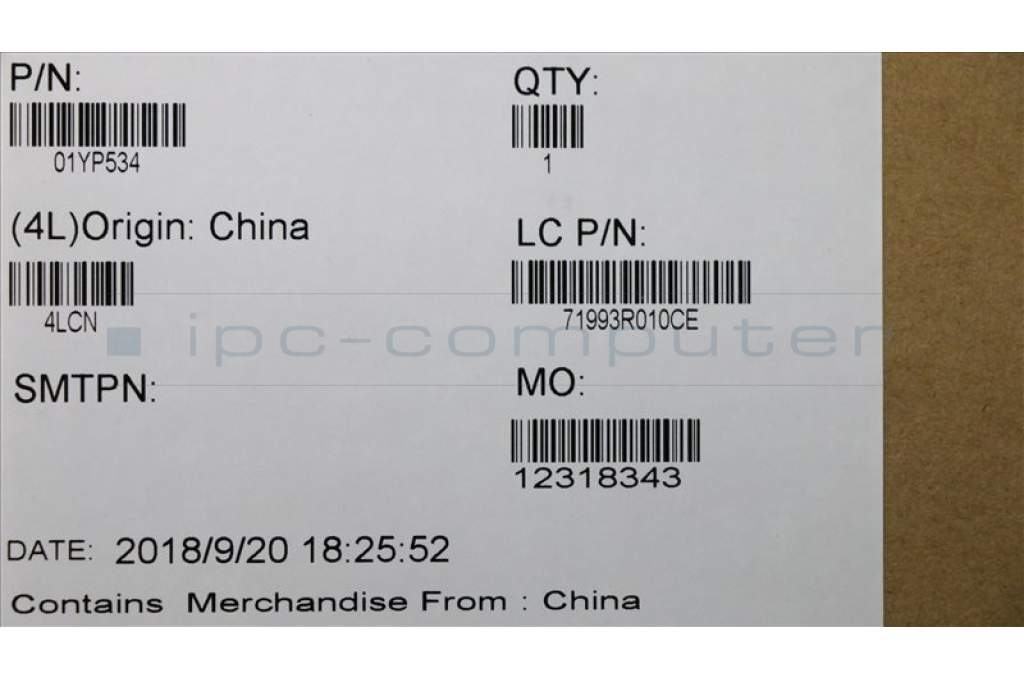 Lenovo 01YP534 NB_KYB FRU COMO FL,SRX,KB-BL,BK,IL