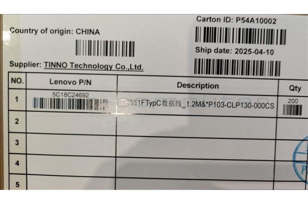 Lenovo 5C18C24692 TB351F TypC_Cbl_1.2M&*P103-CLP130-000 CS