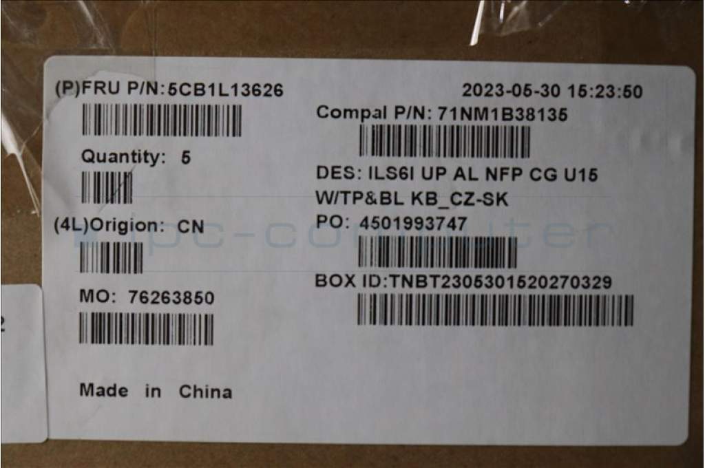 Lenovo 5CB1L13626 COVER UpCase_CZE/SLK C82XF NFP CG BL AL