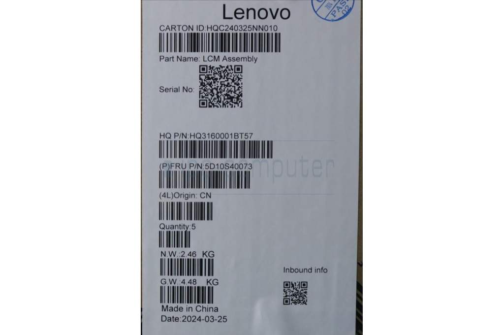 Lenovo 5D10S40073 Lenovo LCD Module,14",HD,Touch,Glare,IPS,300nit,45% NTSC