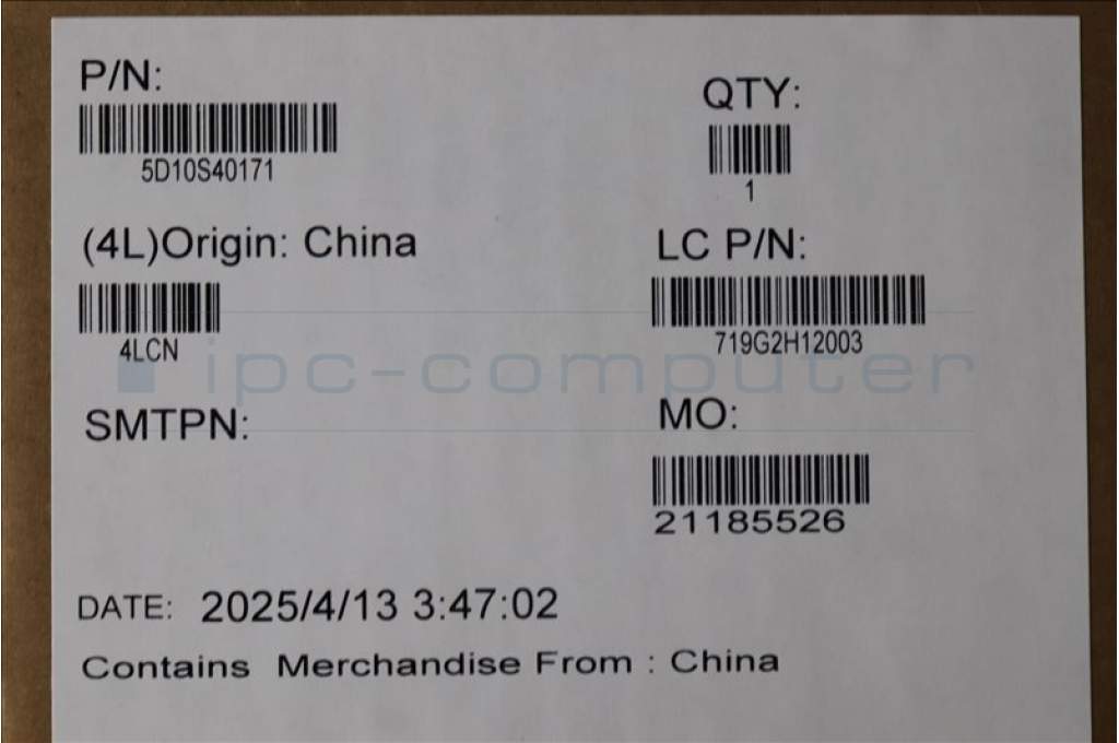 Lenovo 5D10S40171 Lenovo LCD Module, 15", WQXGA, Non_Touch, Glare, OLED, 500nit, 100%DCI-P3, Luna Grey, W/HD Camera
