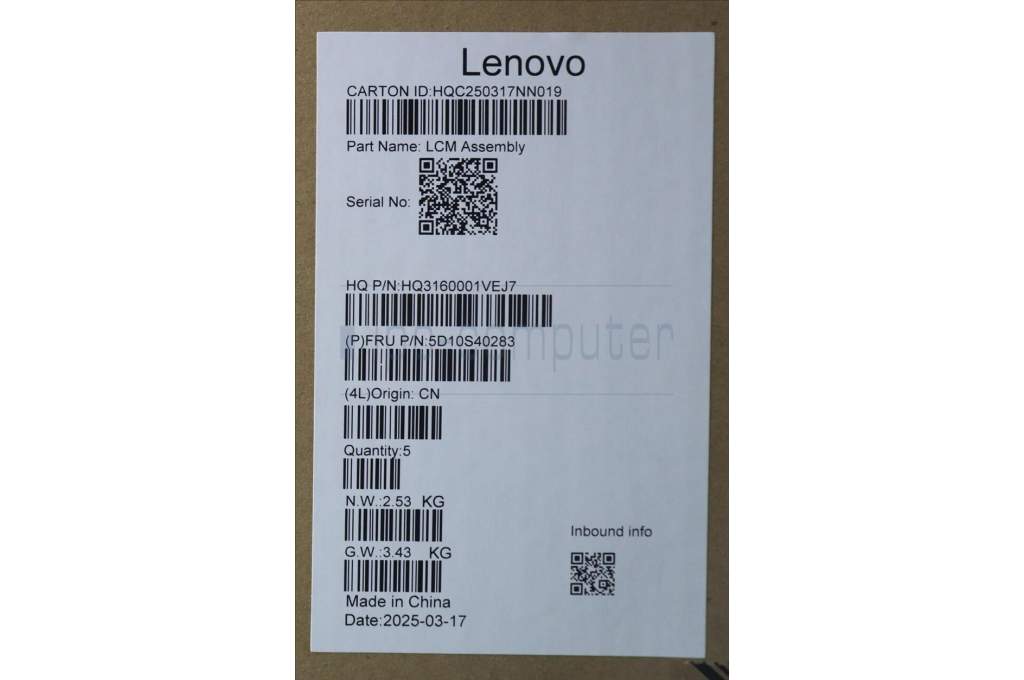 Lenovo 5D10S40283 Lenovo LCD Module, 14", WUXGA, Touch, Glare, Anti-smudge, OLED, 400nit, 100%DCI-P3, Seashell