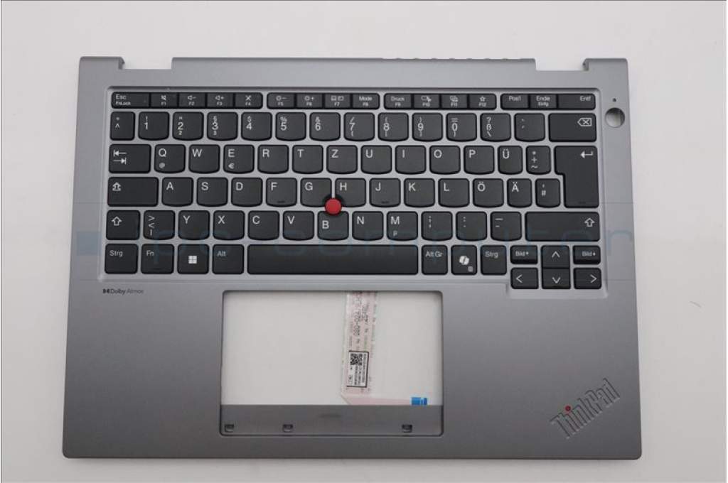 Lenovo 5M11S30277 C-Abdeckung mit Tastatur, Deutsch, Luna-Grau, Ohne_Hintergrundbeleuchtung, Ohne nach vorn zeigender Kamera, Wärmekontaktnieten