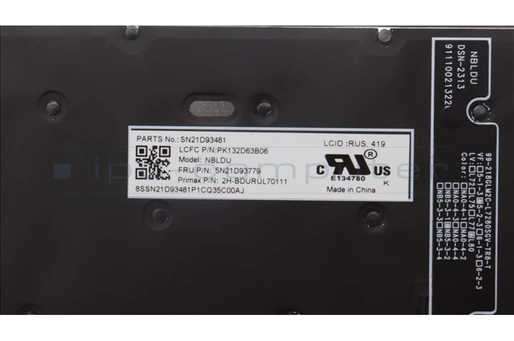 Lenovo 5N21D93779 Keyboard Internal, Russian, Black, Backlight, w/Number, US