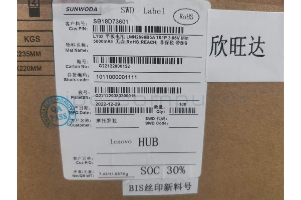 SWD-L L19D1P31 3.86V5000mAh19.3Wh1cell;G