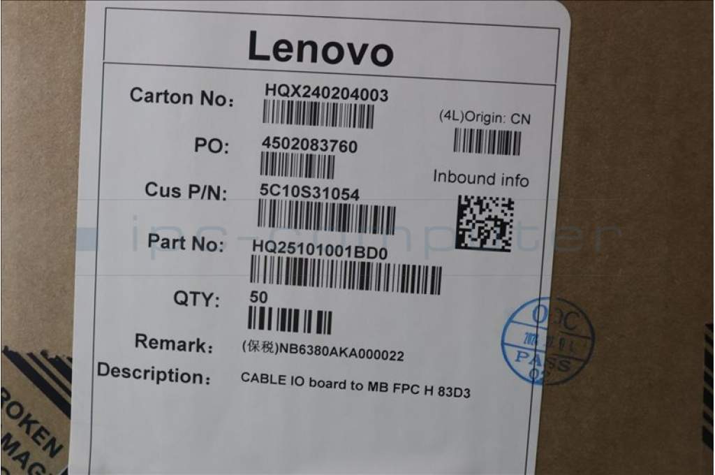 Lenovo 5C10S31054 CABLE IO board to MB FPC H 83D3