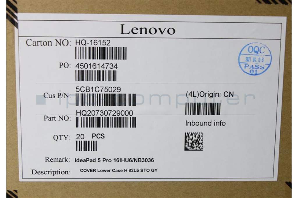 Lenovo 5CB1C75029 COVER Lower Case H 82L5 STO GY
