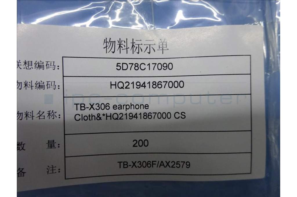 Lenovo 5D78C17090 TB-X306 earphone Cloth&*HQ21941867000 CS