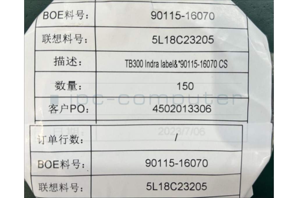 Lenovo 5L18C23205 TB300 Indra label&*90115-16070 CS