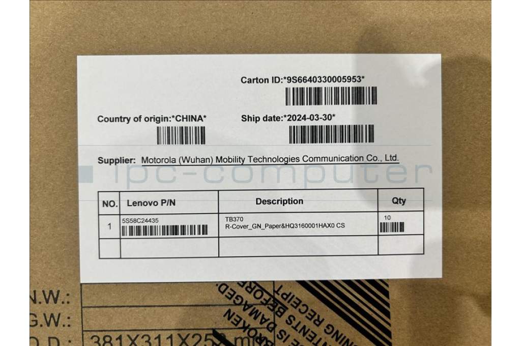 Lenovo 5S58C24435 TB370 R-Cover_GN_Paper&HQ3160001HAX0 CS
