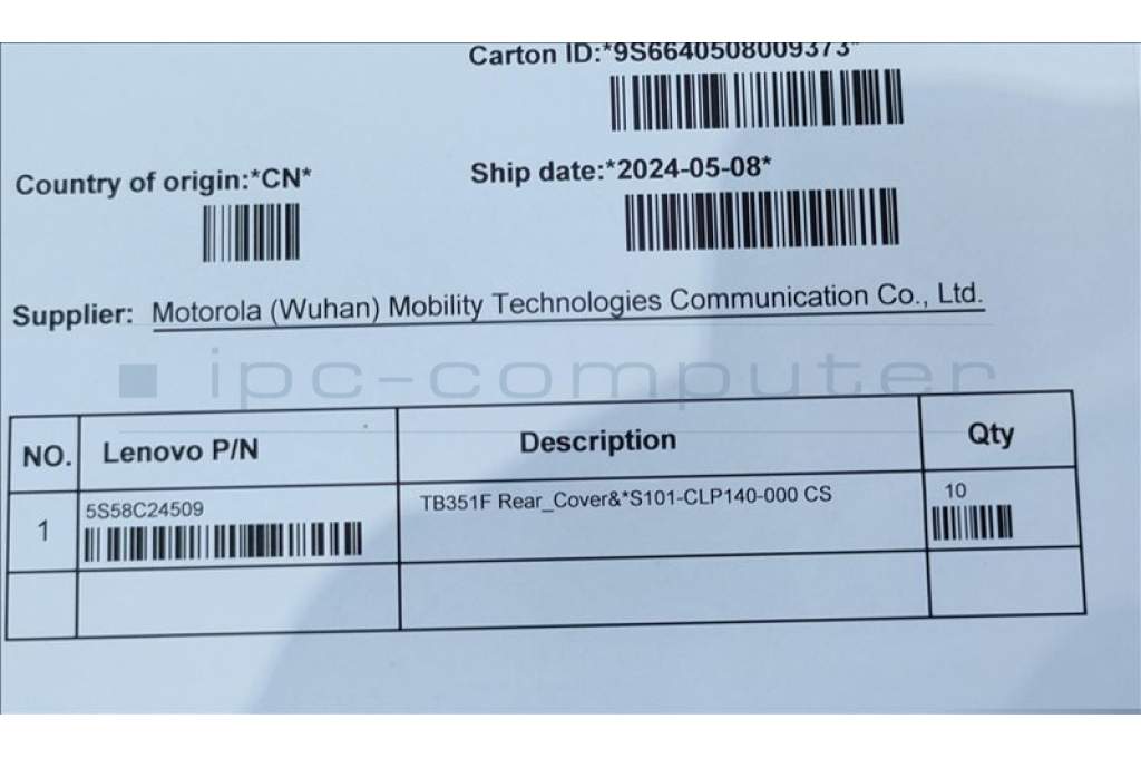Lenovo 5S58C24509 TB351F Rear_Cover&*S101-CLP140-000 CS