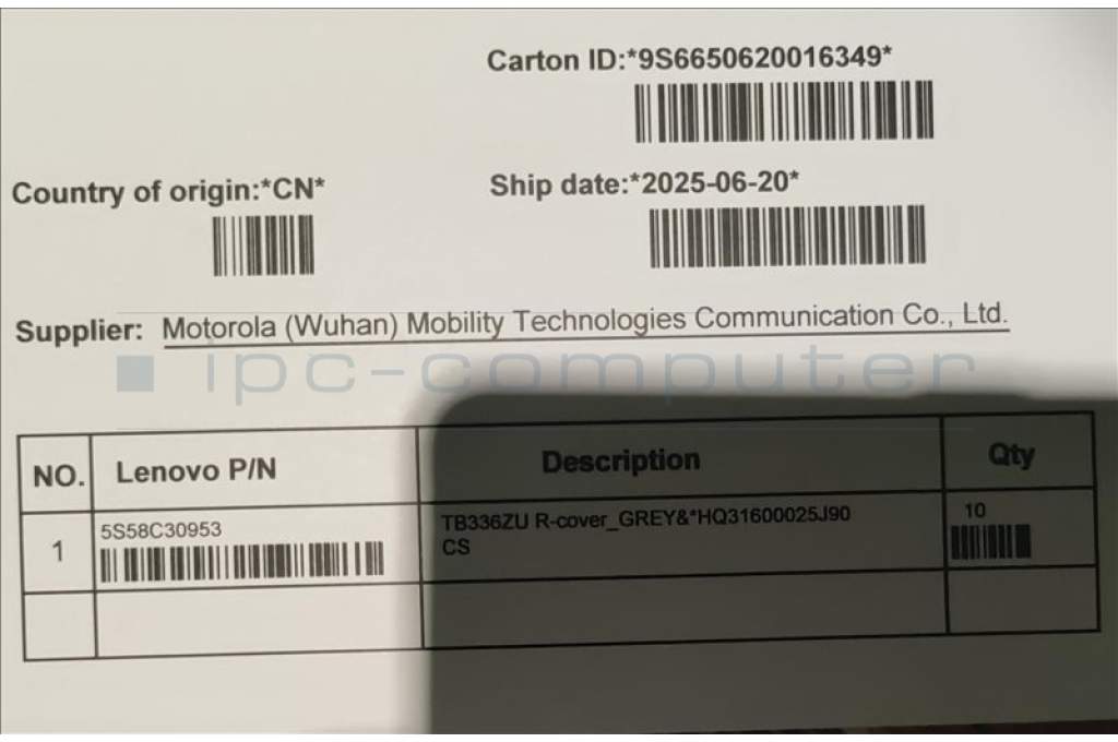 Lenovo 5S58C30953 TB336ZU R-cover_GREY&*HQ31600025J90 CS