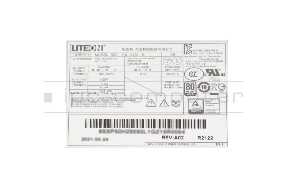 00PC770 Original Lenovo All-in-One Netzteil 150 Watt