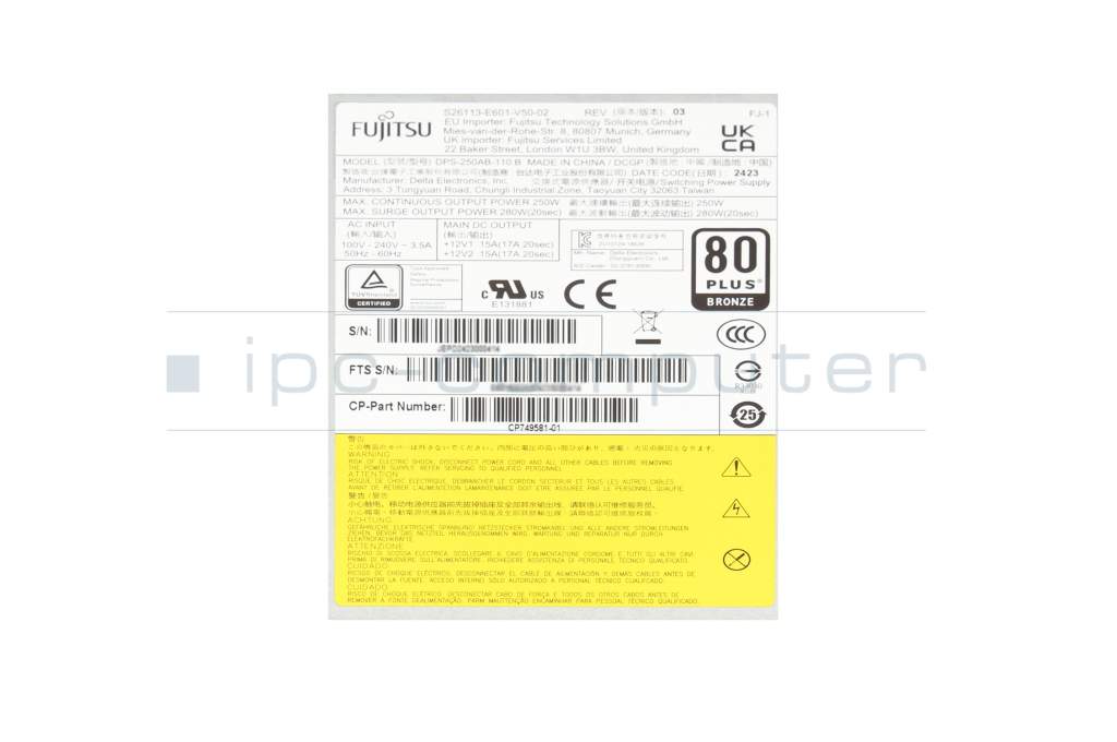 38060575 Original Fujitsu Desktop-PC Netzteil 250 Watt