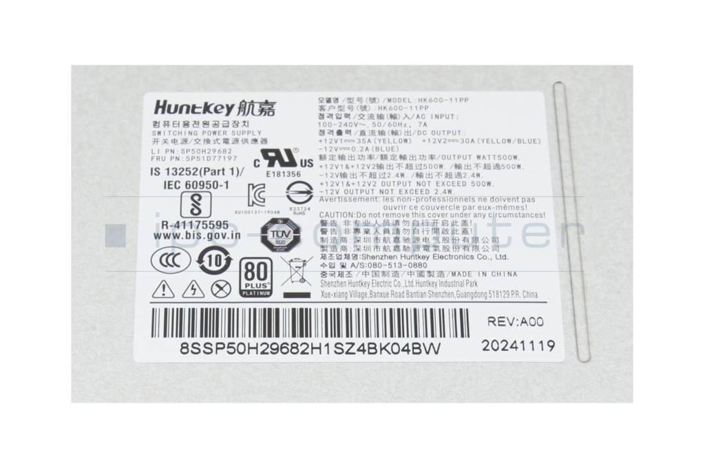 5P51D77099 Original Lenovo Desktop-PC Netzteil 500 Watt