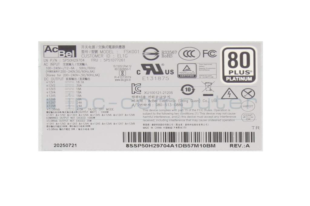 5P51D77255 Original Lenovo Desktop-PC Netzteil 1000 Watt