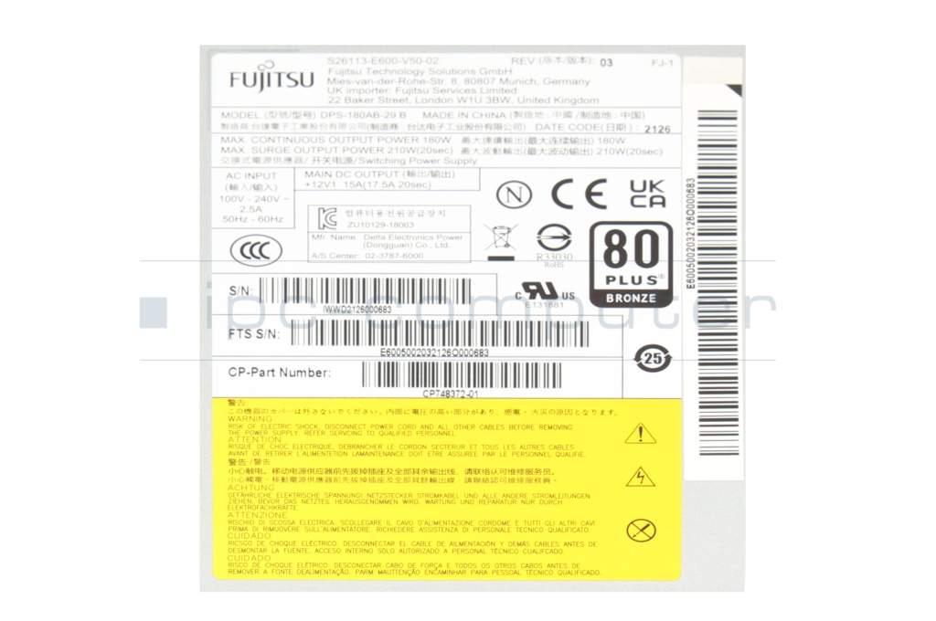 S26461-K1630-L200 Original Fujitsu Desktop-PC Netzteil 180 Watt