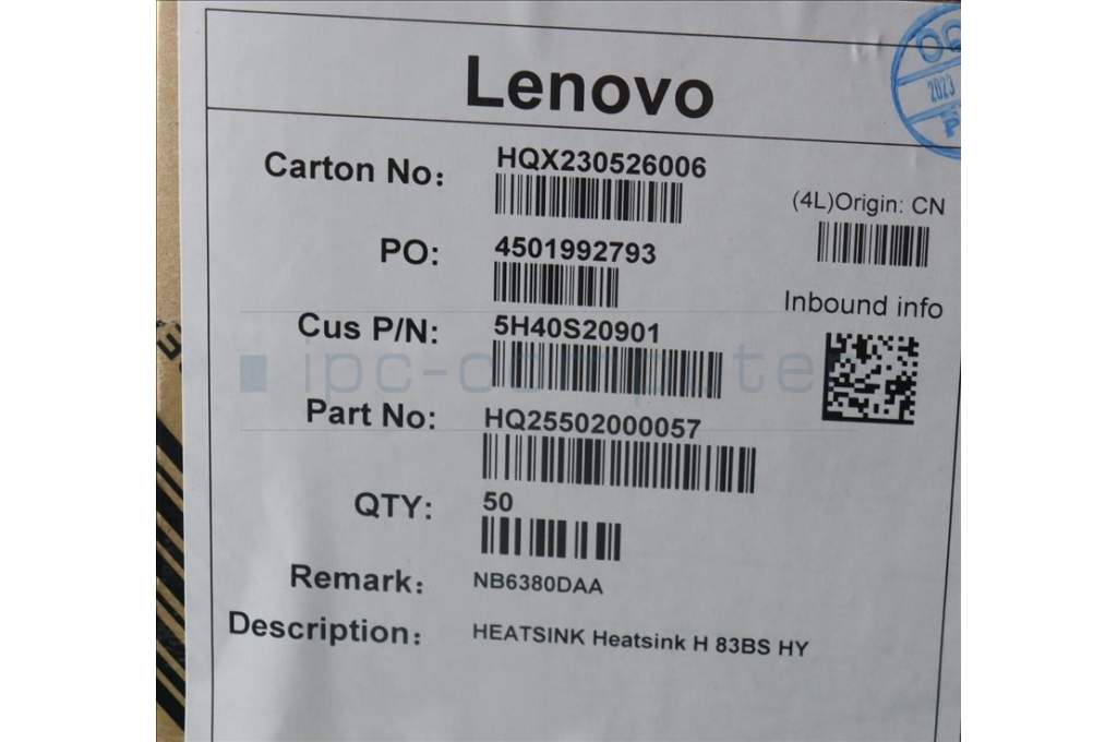 Lenovo 5H40S20901 HEATSINK Heatsink H 83BS HY