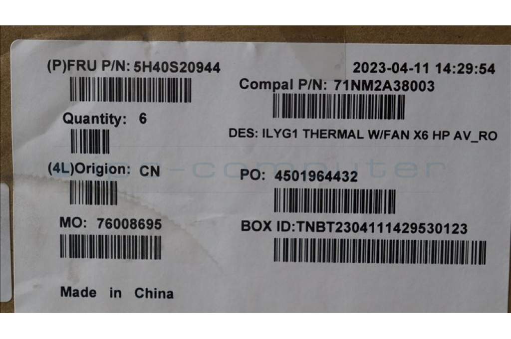 Lenovo 5H40S20944 HEATSINK Thermal Module C 82Y3 AV_RO