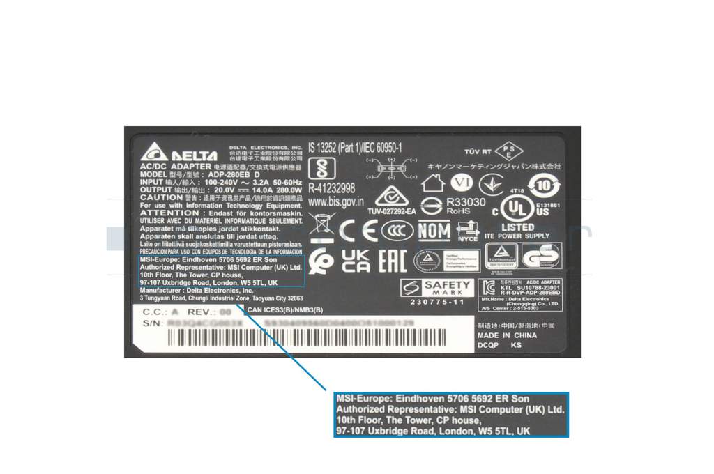 S93-0409330-MSK Original MSI Netzteil 280,0 Watt