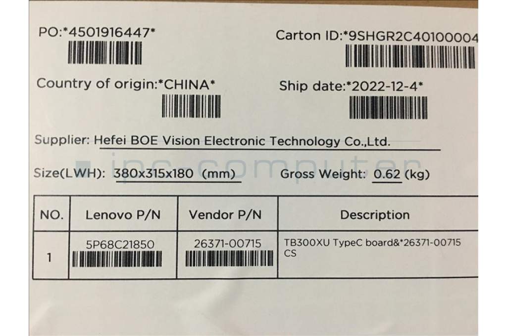 Lenovo 5P68C21850 TB300 TypeC board&*26371-00715 CS