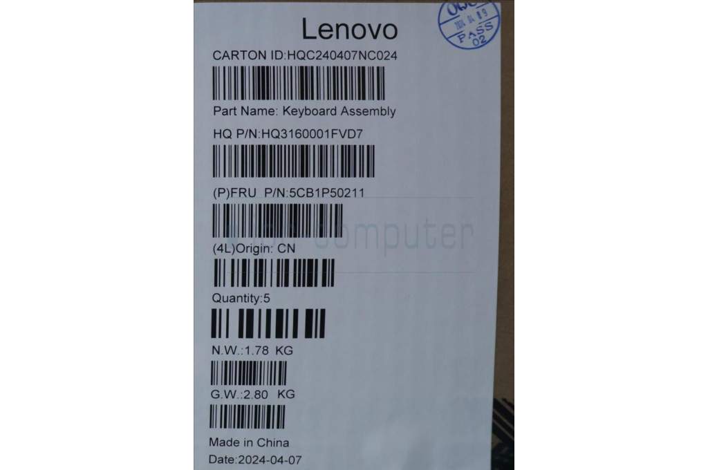 Lenovo 5CB1P50211 Tastatur inkl. Topcase ASM ARA H83E2 LG 2.5K