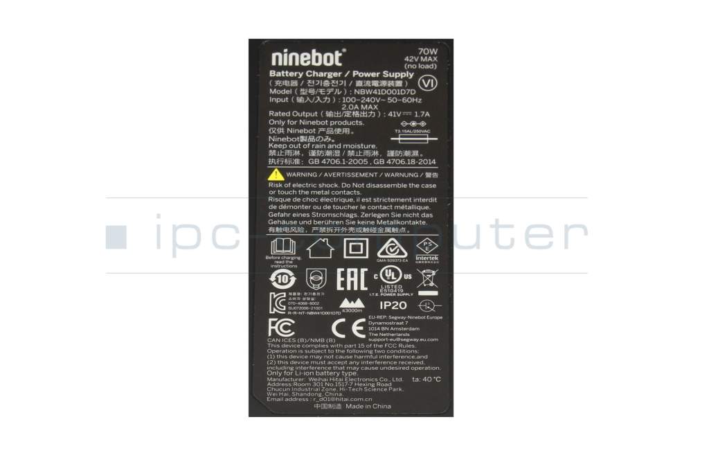 Segway Ninebot eKickScooter F2 D Original Netzteil 70,0 Watt abgerundete Bauform